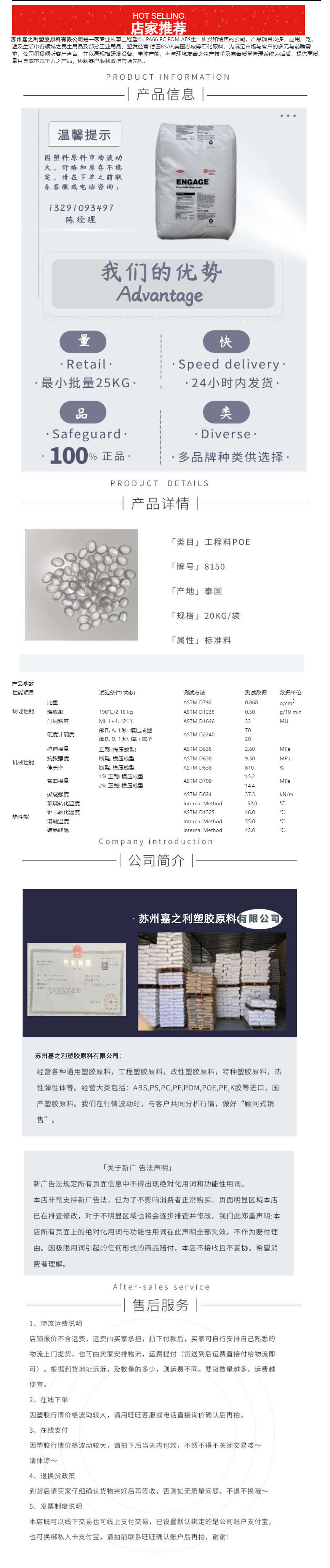立即发布求购意向本网页所展示的有关【POE美国8150现货高流动注塑塑料热弹性体聚烯烃批发增韧剂_热塑性弹性体_苏州嘉之利塑胶原料有限公司】的信息/图片/参数等由简塑原料网的会员【苏州嘉之利塑胶原料有限公司】提供,由简塑原料网会员【苏州嘉之利塑胶原料有限公司】自行对信息/图片/参数等的真实性、准确性和合法性负责,本平台(本网站)仅提供展示服务,请谨慎交易,因交易而产生的法律关系及法律纠纷由您自行协商解决,本平台(本网站)对此不承担任何责任。您在本网页可以浏览【POE美国8150现货高流动注塑塑料热弹性体聚烯烃批发增韧剂_热塑性弹性体_苏州嘉之利塑胶原料有限公司】有关的信息/图片/价格等及提供【POE美国8150现货高流动注塑塑料热弹性体聚烯烃批发增韧剂_热塑性弹性体_苏州嘉之利塑胶原料有限公司】的商家公司简介、联系方式等信息。